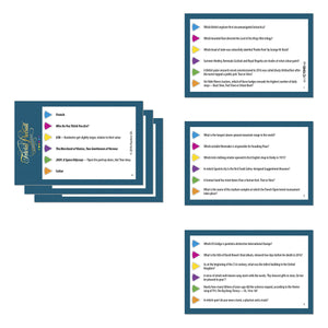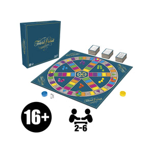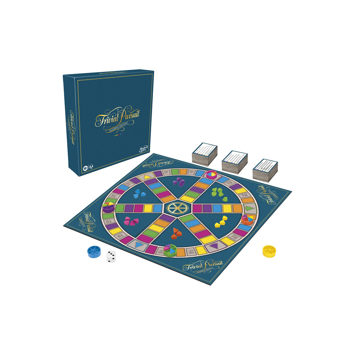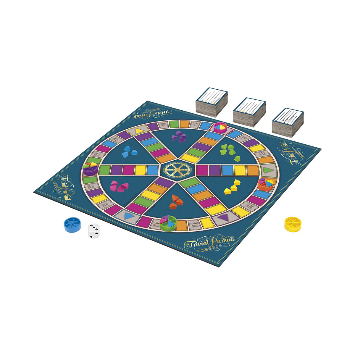 Players move around the board answering questions. When a player lands on a category space, they'll earn the corresponding coloured wedge if they answer the question correctly. The first player to collect 6 different coloured wedges and answer a final question correctly wins! Trivial Pursuit, the associated logo, the distinctive design of the gameboard, trivia cards, game tokens, and scoring wedges are trademarks of Hasbro. Hasbro Gaming and all related terms are trademarks of Hasbro.