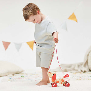 Encourage first steps, walking and running with our Walk-A-Long Puppy called Pepe. This walk-along toy stimulates physical coordination, balance, and creativity. With a wagging tail and a friendly face, this pull-along puppy makes learning to walk a joyful experience.