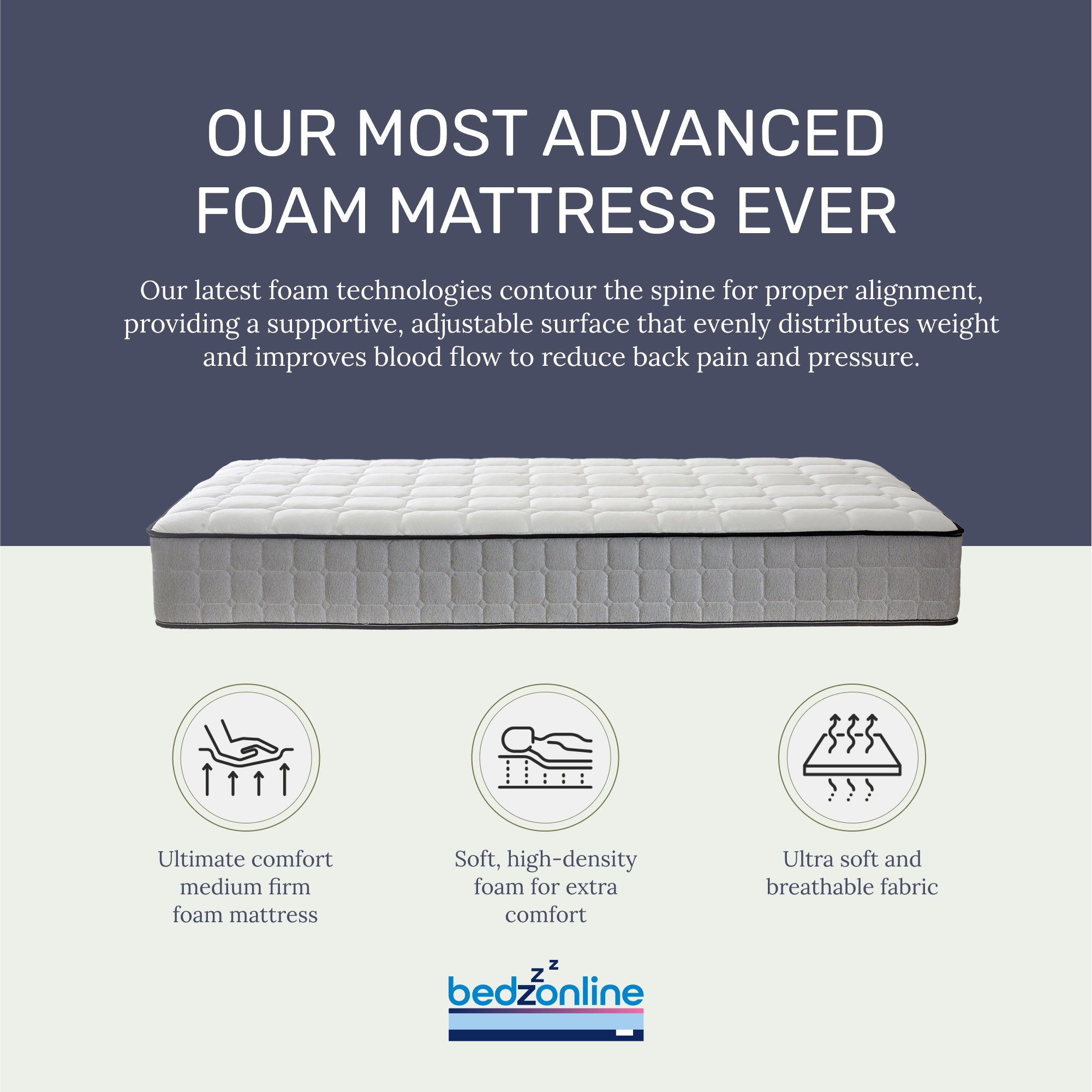 A responsive layer of supportive memory foam that contours to your body. It works to promote muscle relaxation, improve blood flow circulation, and stimulate a stress-free sleep experience.