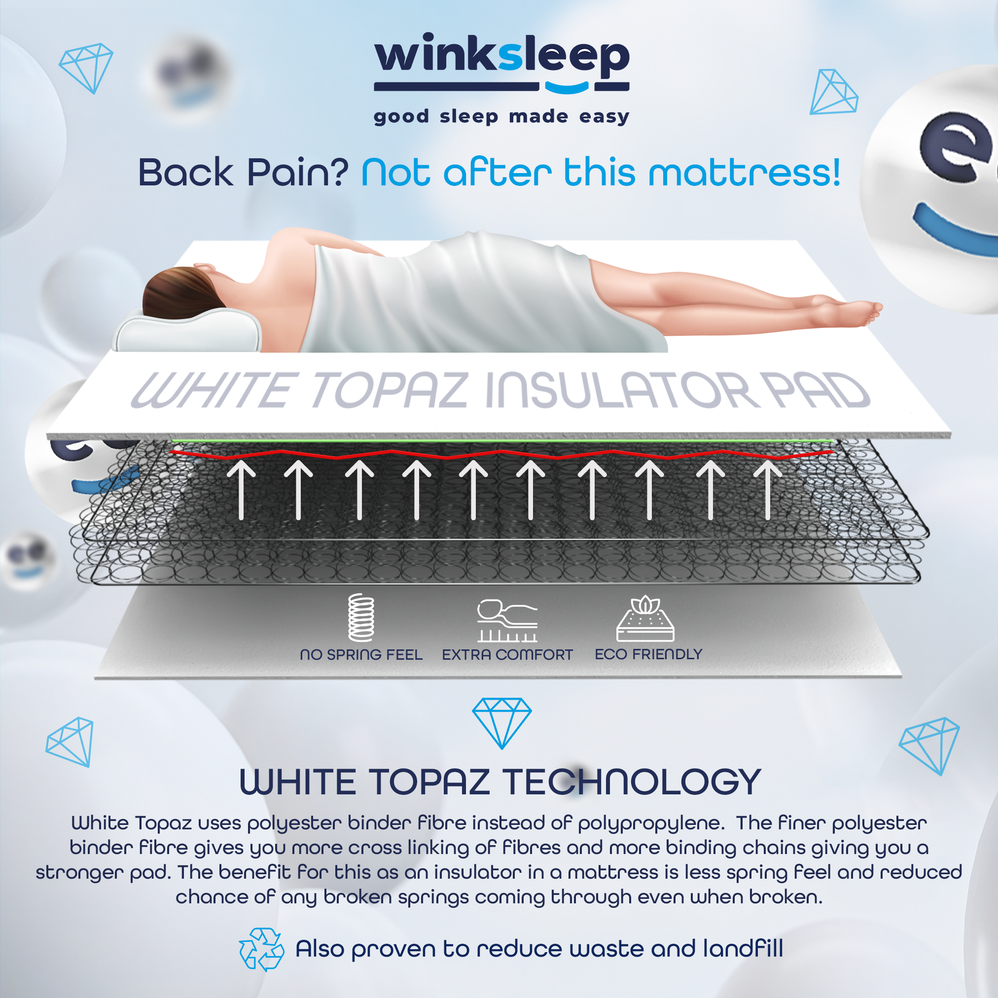 WS-GRAVITY-COIL-30 Wink Sleep Gravity Memory Foam Spring Mattress with premium Cool Touch Fabric: