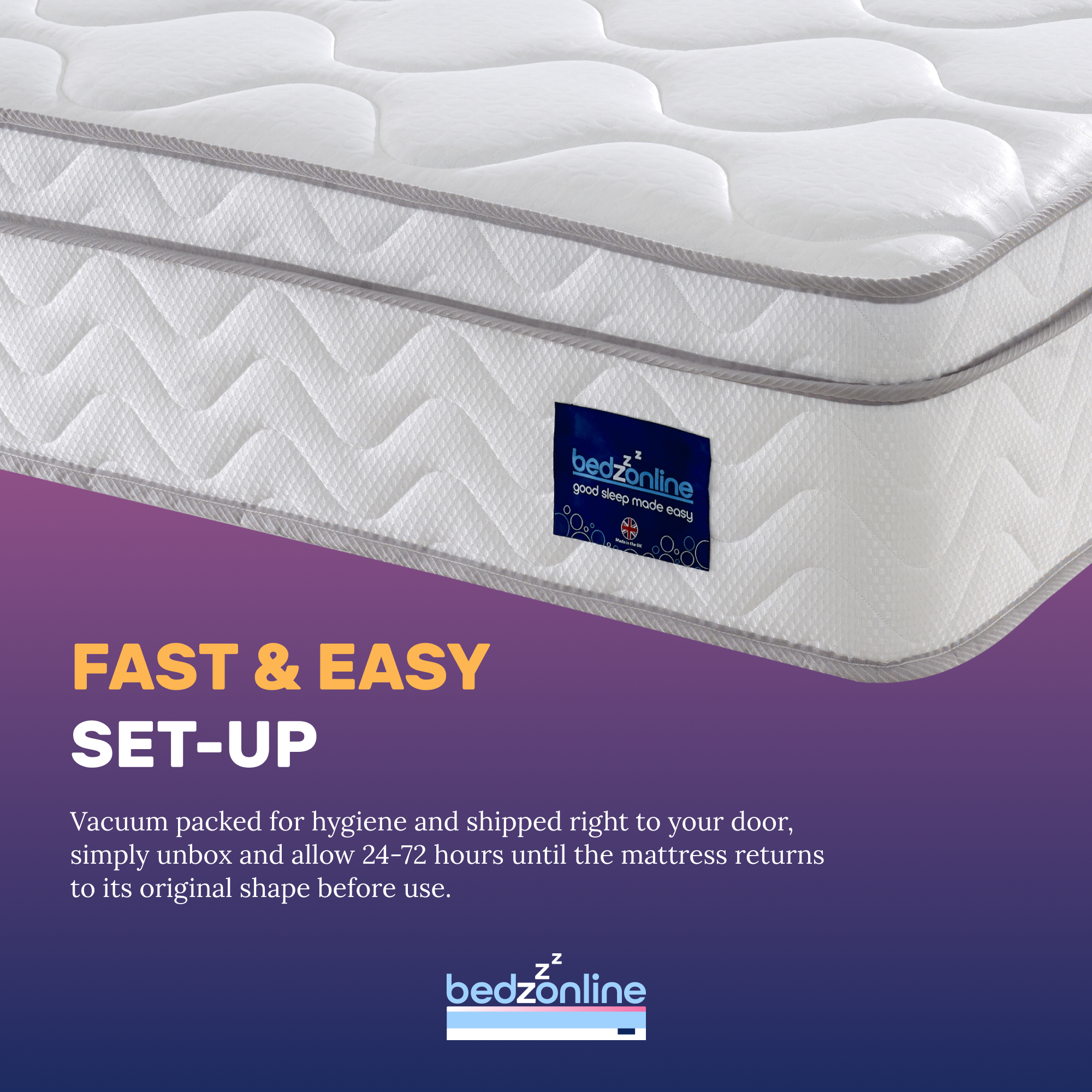 From the Ultra Cool Blue Memory Foam to the advanced coil system beneath, every layer is engineered for breathability, durability, and comfort. Wrapped in a premium cooling fabric, it’s sleep technology refined to perfection.