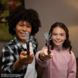 Experience the magic of Harry Potter with the Spectacular Spell Wand! Featuring authentic details, magical sounds and an exciting visual effect, this 11-inch replica Harry Potter wand is a must-have for fans and collectors. Wave the wand and pretend to cast your favorite spells, like Expelliarmus, Expecto Patronum and more! As you wave the wand, watch as it magically comes to life with its sparkle effect out of the tip of the wand, and 40 seconds of sounds from the movies!